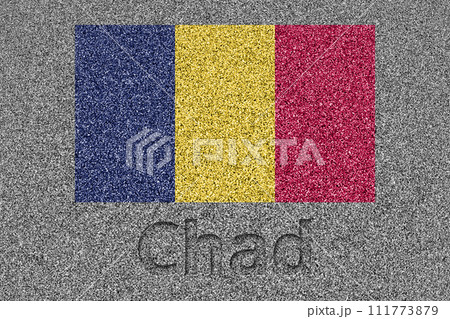 石板の上に描かれたチャドの国旗と、掘ったような「Chad」の文字