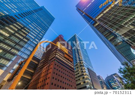 日本の東京都市景観 読売新聞社や大手町駅出口などを望む
