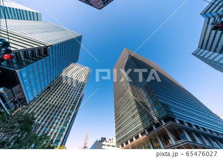 日本の東京都市景観 大手町の摩天楼・赤信号