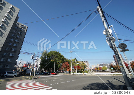 札幌 平岸通の街風景(旭町2丁目、平岸通の起点・菊水旭山公園通交差点付近)