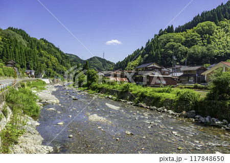 佐治 佐治川沿いの街並み 鳥取県鳥取市