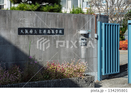 大阪府立松原高校:多様な学びを提供する総合学科の校舎と学校生活 南門の銘板