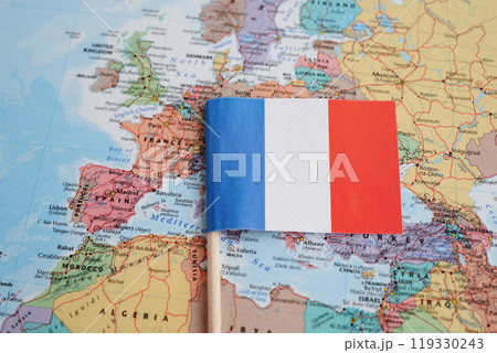 Bangkok, Thailand May 15, 2023 France flag on world map.