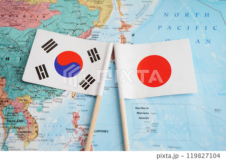Bangkok, Thailand December 10, 2023 Japan and Republic of Korea map in world map paper.
