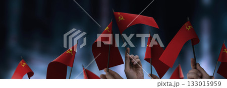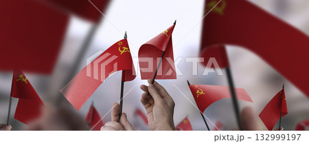 Flag of the Soviet Union or ussr flag blowing in the wind. 3D rendering illustration of waving sign.