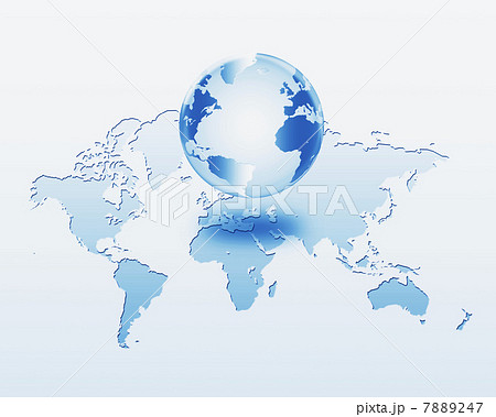 透明な地球儀と人工衛星の模型と光の輪のイメージ素材
