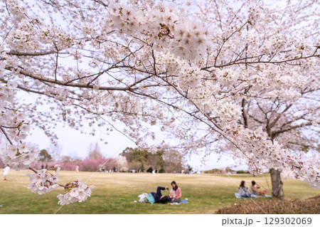 三重県四日市市 春の北勢中央公園 桜と春を楽しむ人