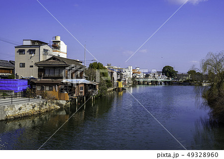 岡山 倉敷市玉島 玉島町並み保存地区 溜川 玉島図書館方面 新橋
