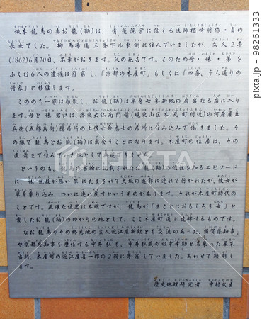 お龍(坂本龍馬の妻)独身時代寓居跡の説明書き(京都府京都市中京区) 2022年11月