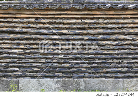 土居廓中の伝統的建造物群保存地区内の南北の路に面した練塀(瓦練塀と石練塀が連続している)