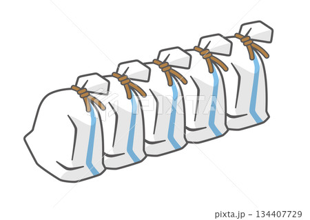 縦置きで並べられた防災用土嚢のシンプルなベクターイラスト