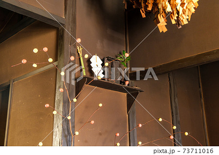 繭玉飾りと神棚