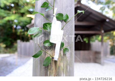 伊勢神宮外宮境内の土宮前鳥居と榊