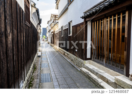 虫籠窓がある商家が並ぶ倉敷の朝の風景 岡山県倉敷市
