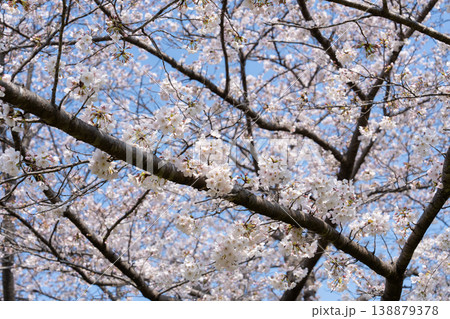 お堀の土手の緑に映える桜・江戸城桜田濠