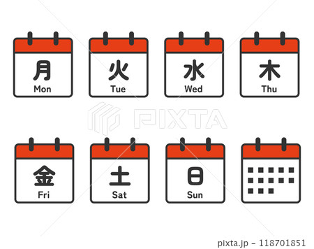 曜日(漢字と英語)のカレンダーアイコンセット
