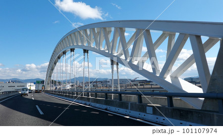 滋賀県 新名神高速道路を走行中の自動車 近江大鳥橋を通過