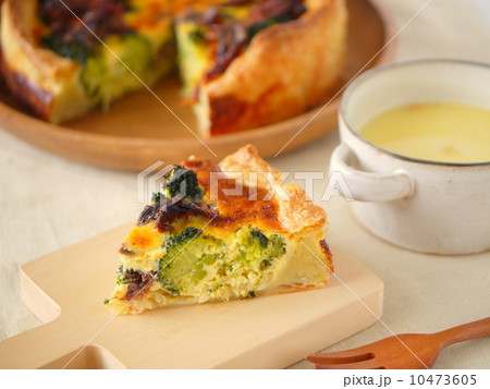 アパレイユを注ぐ前のドライトマトとブロッコリーのキッシュ(横位置)