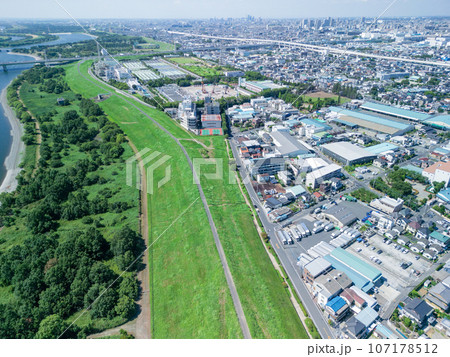 空撮「埼玉県」彩湖上空から戸田市街を撮影