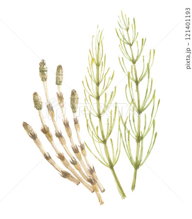 水彩手書きのつくしとスギナのイラスト