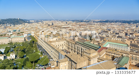 サンピエトロ大聖堂の最頂部から見下ろすバチカン美術館とローマの街並み / Rome, Italy