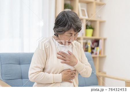 体調不良のシニア女性 胸痛 胃痛