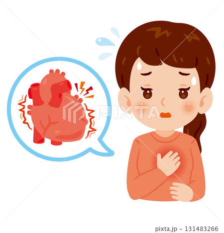 心臓がドキドキする女性 上半身イラスト