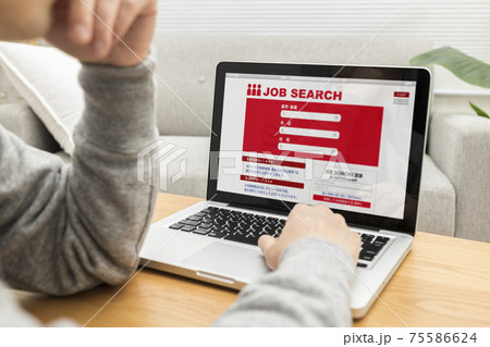 パソコンで求人検索している男性