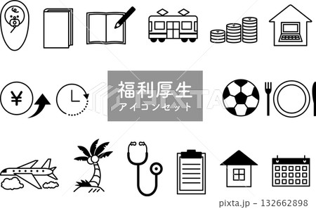 福利厚生にまつわるアイコンセット(モノクロ)