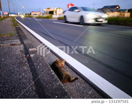 道で寝ている危ない猫 交通事故
