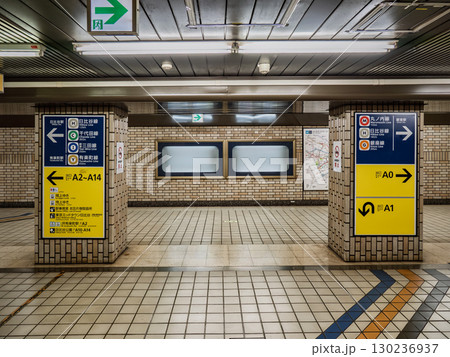 鉄道地下駅の通路と出口案内表示(JR新日本橋駅)