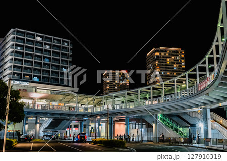 夜のJR海老名駅(西口)と小田急海老名本社ビル