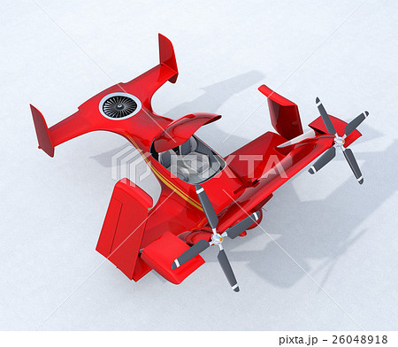 主翼が折り畳まれた赤色のドローンタクシー。オリジナルデザイン。