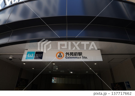 東京の地下鉄外苑前駅地上出口