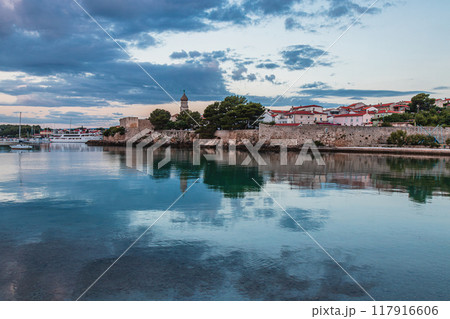 Krk Croatia 27..06.24A view of the old town and the port in the morning alone