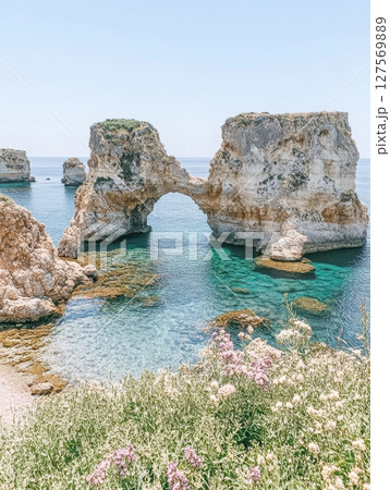 Stunning Coastal Rock Arch Turquoise Water Scenic View Summer Vacation sea sky blue calm ocean beach