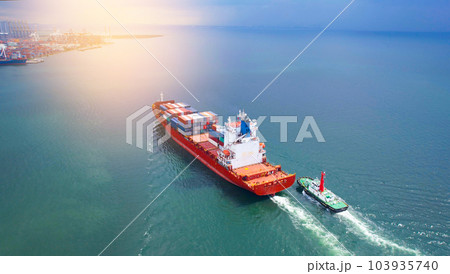 International trade concept .Aerial view of container shipping business Import-Export Logistics Shipping ships are heading to ports, transported by large cargo ships.