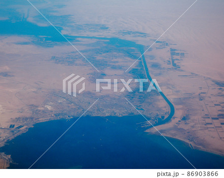 空から見るスエズ運河