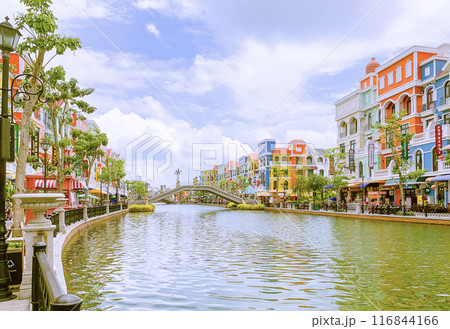 View Of Colorful Houses And Canal At Grand World Complex In Phu Quoc Island, Vietnam.
