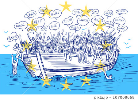 Refugees migration from Africa to Europe, Asylum Seeker. Vector hand drawn
