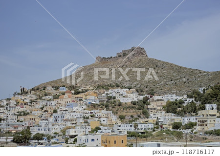 Madonna of the Castle seen from Panteli, Leros island, Greece