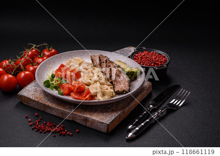 Tuscan pasta with smoked paprika and basil,parmesan cheese, Italian traditional cuisine,