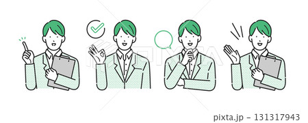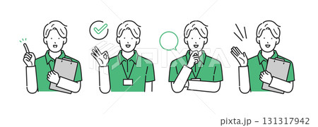 イラスト素材【介護イメージ】:様々なポーズをとるケアマネージャーの男性・シンプルタッチ