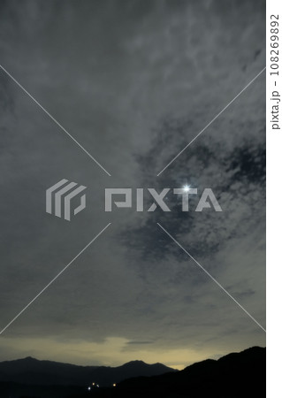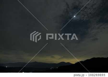北杜市白州町、未明の空高く昇った明けの明星。雲の隙間で一際輝く