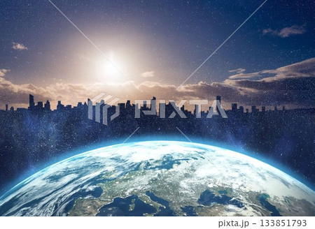 Picture of the earth in front of a city