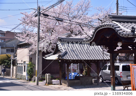 京都・山科・六角堂横の桜と京阪京津線の踏切
