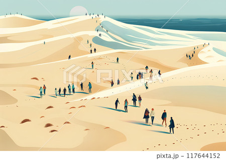 Mining Company Vector Illustration Featuring Heavy Yellow Dumper Trucks for Industrial Sand Mining Process or Transportation in a Flat Background