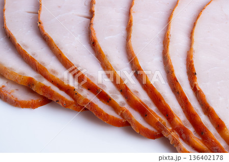 Healthy meal preparation. Lean roast ready for meal prep. Uniformly sliced lean meat for healthy eating. Prepared lean roast slices designed for nutritious meal planning