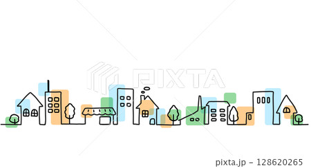 街並みのシンプルな手描き線画イラスト カラー付き