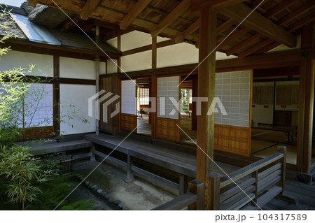栃木県 足利学校の方丈 茅葺屋根建物の出入口
